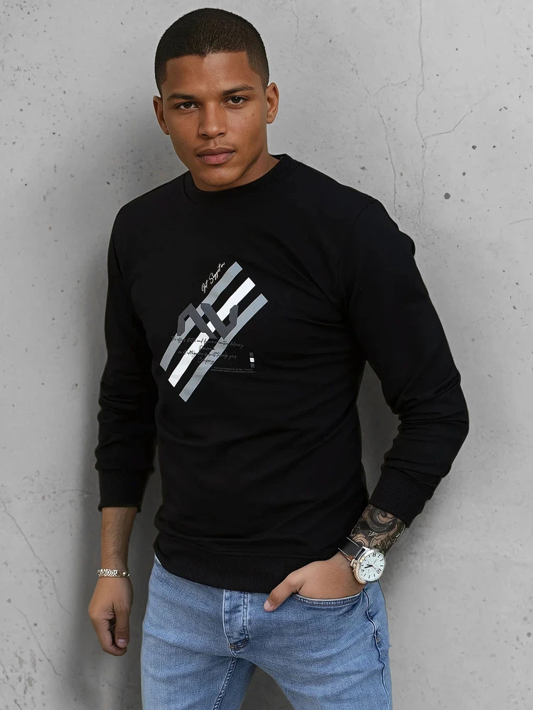 Pánská mikina s potiskem černá FashionStreet BX5364
