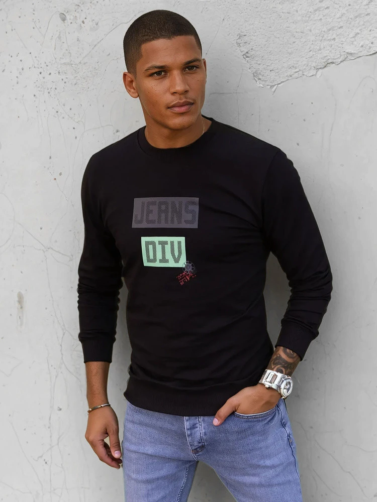 Pánská mikina s potiskem černá FashionStreet BX5376