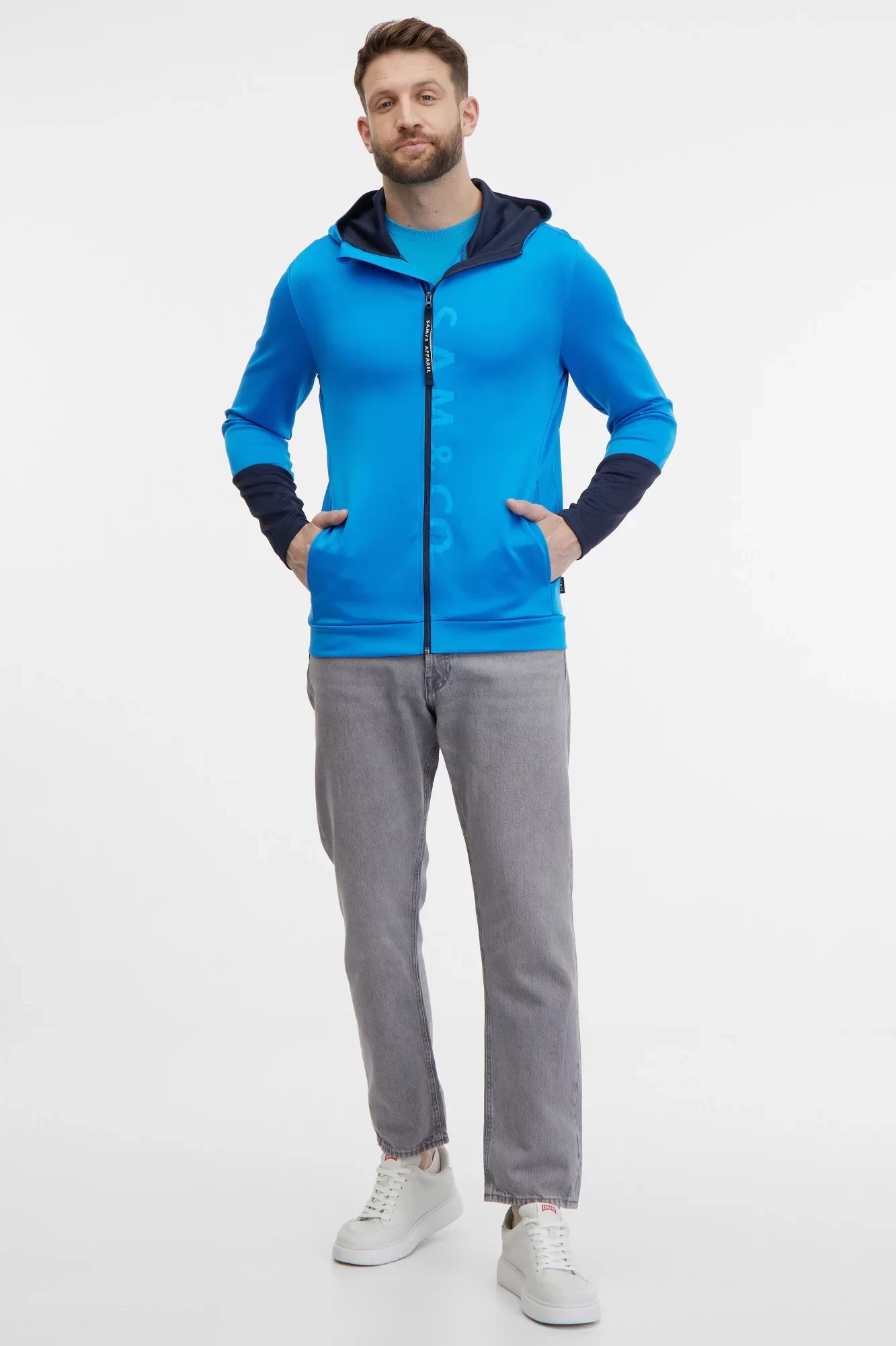 Pohodlná pánská mikina má ozdobný taháček a logo po celé délce zipu.