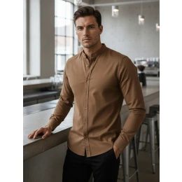 Pánská hladká košile SLIM FIT DX2592 coffee