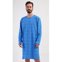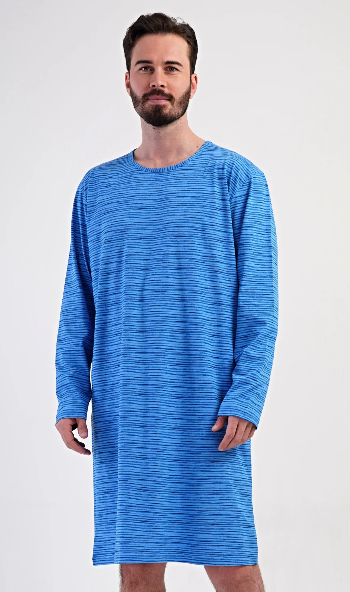 Pánská bavlněná noční košile s dlouhým rukávem Sebastian. Noční košili s kulatým výstřihem a délkou po kolena zdobí jemné proužky. Je vhodným dárkem pro všechny milovníky pohodlného spaní. Použitý materiál s obsahem bavlny 100% je příjemný a poddajný na dotek.