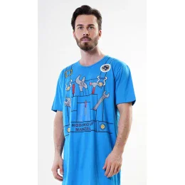 Pánská bavlněná noční košile s krátkým rukávem Hodinový manžel. Pánská noční košile pro všechny milovníky pohodlí má vtipný potisk imitující montérky s nářadím. Použitý bavlněný materiál je příjemný a poddajný na dotek.