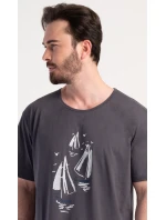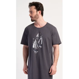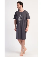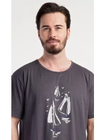 Pánská bavlněná noční košile s dlouhým rukávem Jachting. Jednobarevná pánská noční košile s kulatým výstřihem a délkou po kolena má na hrudi obrázek plachetnice a nápis 'Cape of good hope'. Noční košile je vhodným dárkem pro všechny milovníky moře a dálek. Použitý materiál s obsahem bavlny 100% je příjemný a poddajný na dotek.