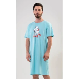 Pánská bavlněná noční košile s krátkým rukávem Lucky day. Pánská noční košile s obrázkem medvěda a nápisem LUCKY DAY je určena pro všechny milovníky pohodlí. Použitý materiál je jemný a poddajný na dotek. Obsah bavlny je 100%.