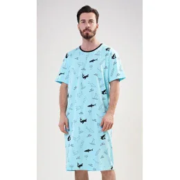Pánská bavlněná noční košile s krátkým rukávem Oceán. Pánská noční košile pro všechny milovníky pohodlí je potištěna mořskými motivy. Použitý bavlněný materiál je příjemný a poddajný na dotek.