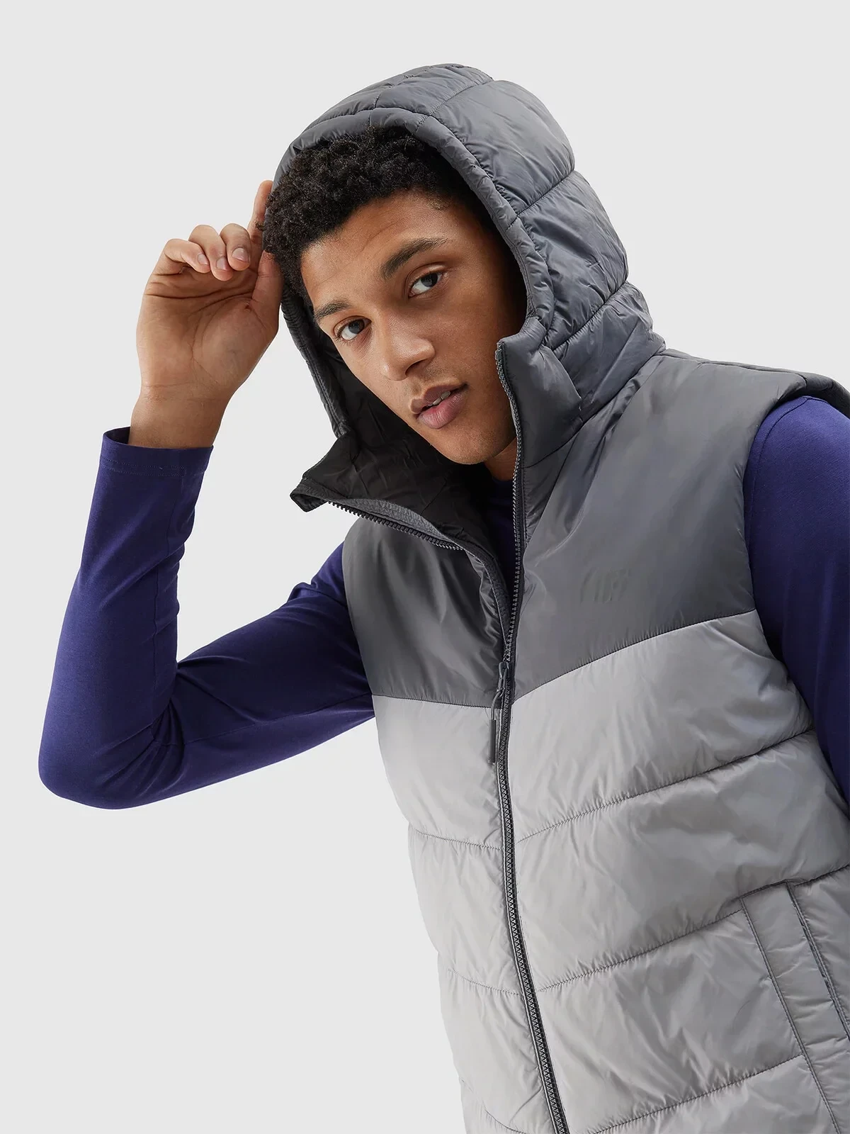 Pánská péřová vesta s výplní ze syntetického peří 4F - šedá