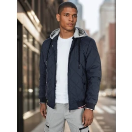 Pánská přechodná prošívaná bunda s kapucí modrá FashionStreet TX5012