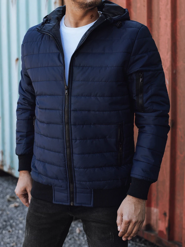 Pánská přechodná prošívaná bunda s kapucí tmavě modrá FashionStreet TX4936