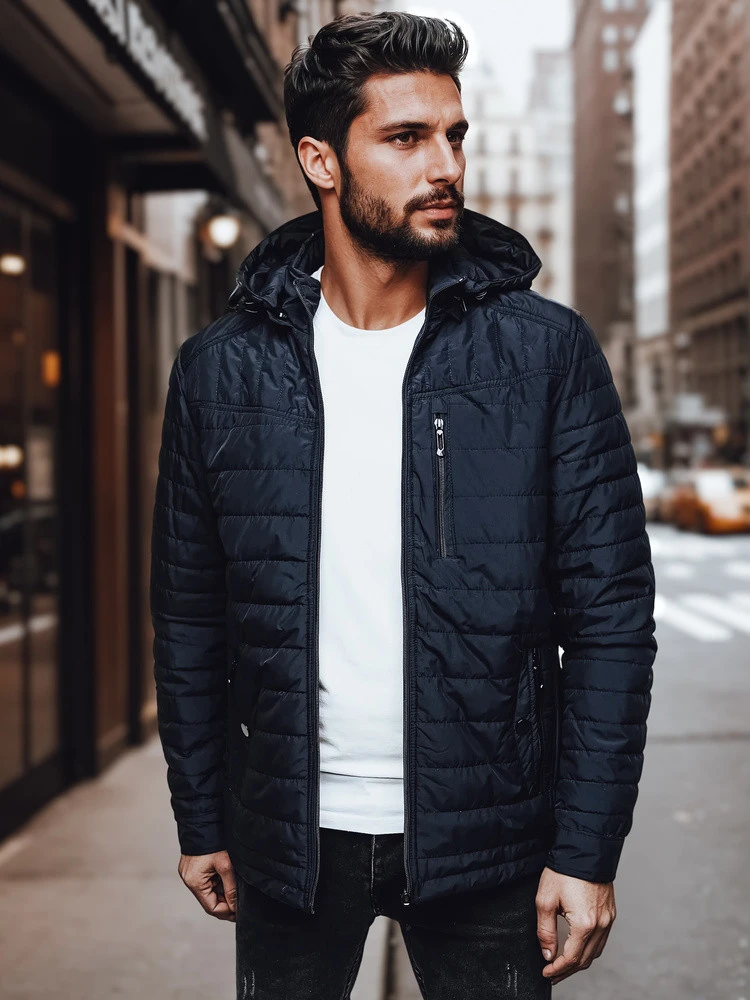 Pánská přechodná prošívaná bunda s kapucí tmavě modrá FashionStreet TX4999