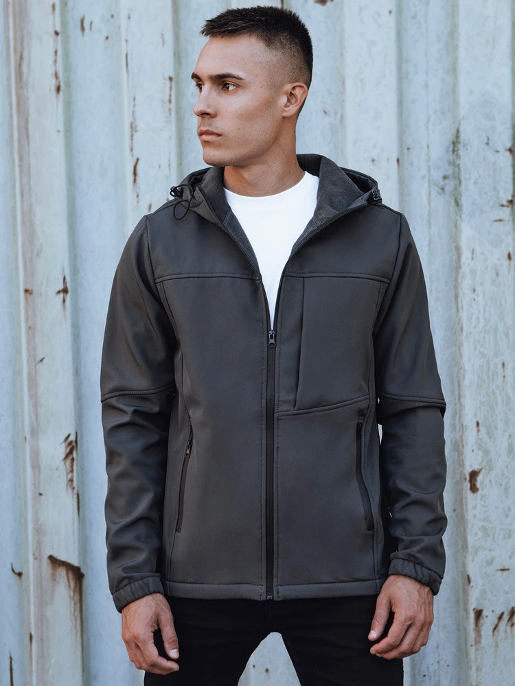 Pánská přechodná softshellová bunda s kapucí tmavě šedá FashionStreet TX4816