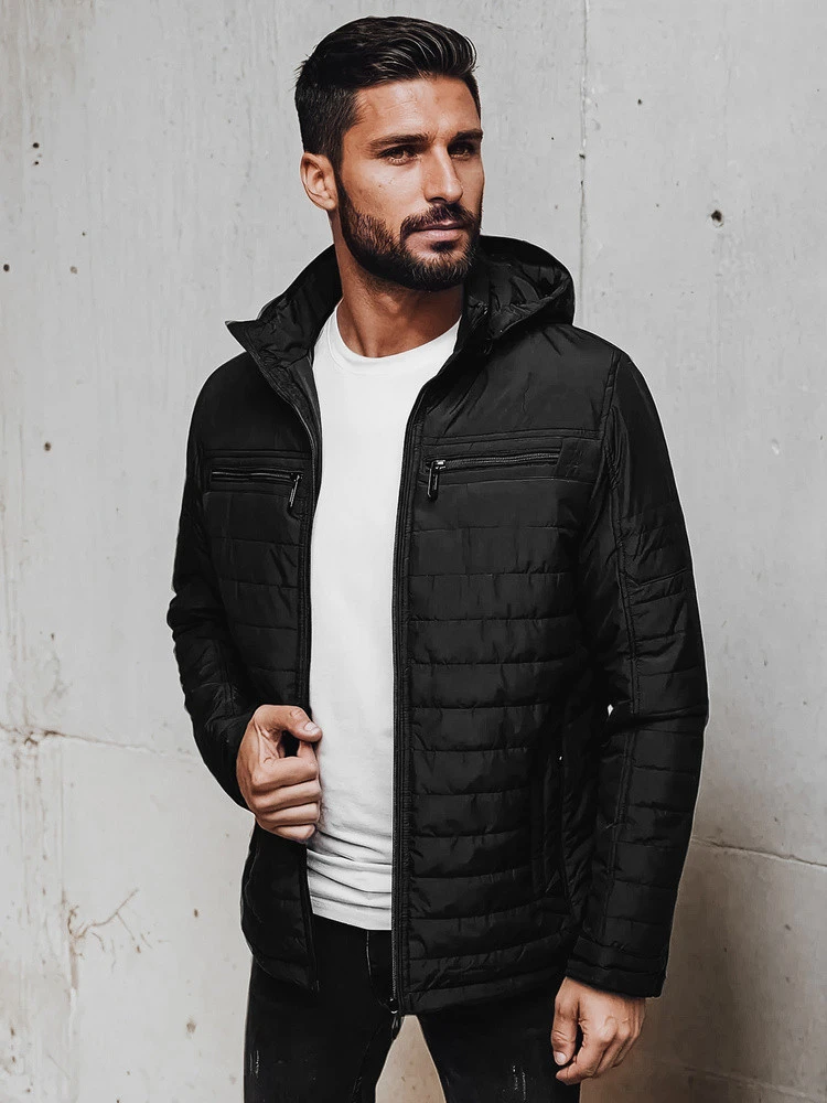 Pánská prošívaná bunda s kapucí černá FashionStreet TX5009