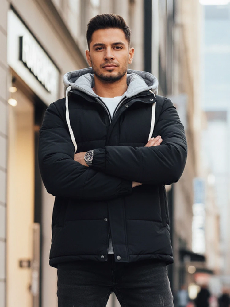 Moderní zimní bunda s praktickým sportovním střihem. Model byl navržen s ohledem na pohodlí a ochranu před chladem, má kapuci s všitou vnitřní podšívkou a nastavitelnou šňůrkou na přední straně. Pečlivě provedené prošívání a elastické prvky na manžetách zajišťují pohodlné nošení a odolnost po mnoho sezón.