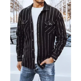 Pánská pruhovaná flanelová košile černá FashionStreet DX2241