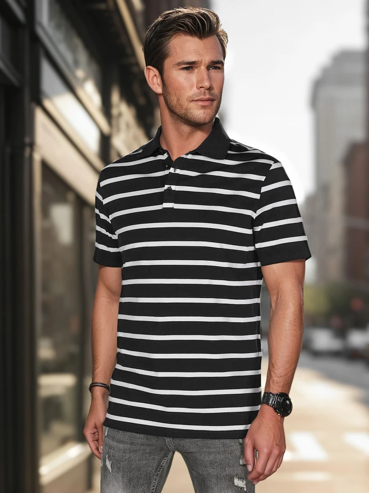 Pánská pruhovaná polokošile černá FashionStreet PX0636