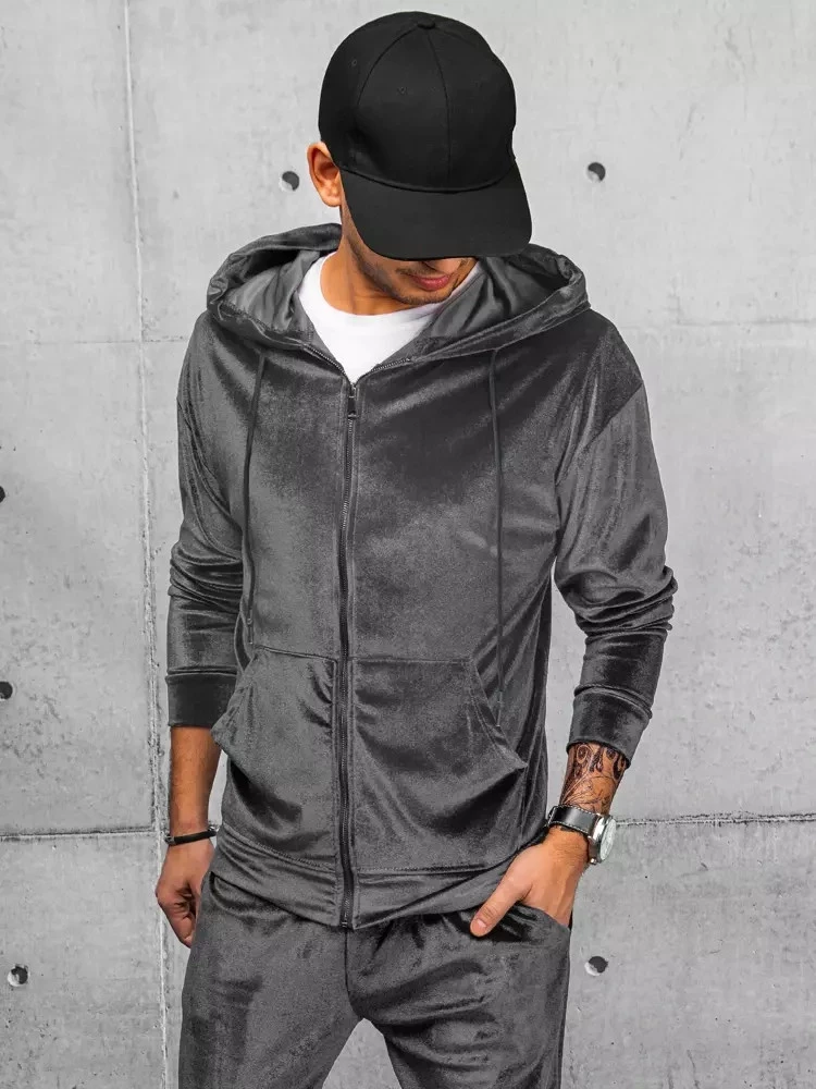 Pánská šedá velurová mikina FashionStreet BX5540