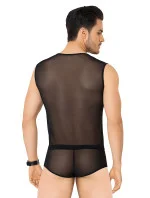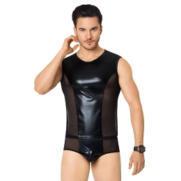 Pánská souprava 4605 SoftLine collection - černé tričko bez rukávů v latexové imitaci - boky trička jsou z průsvitné černé látky - boxerky v kombinaci černé látky s průsvitnou - okouzlíte a zvýšíte chuť každé ženy