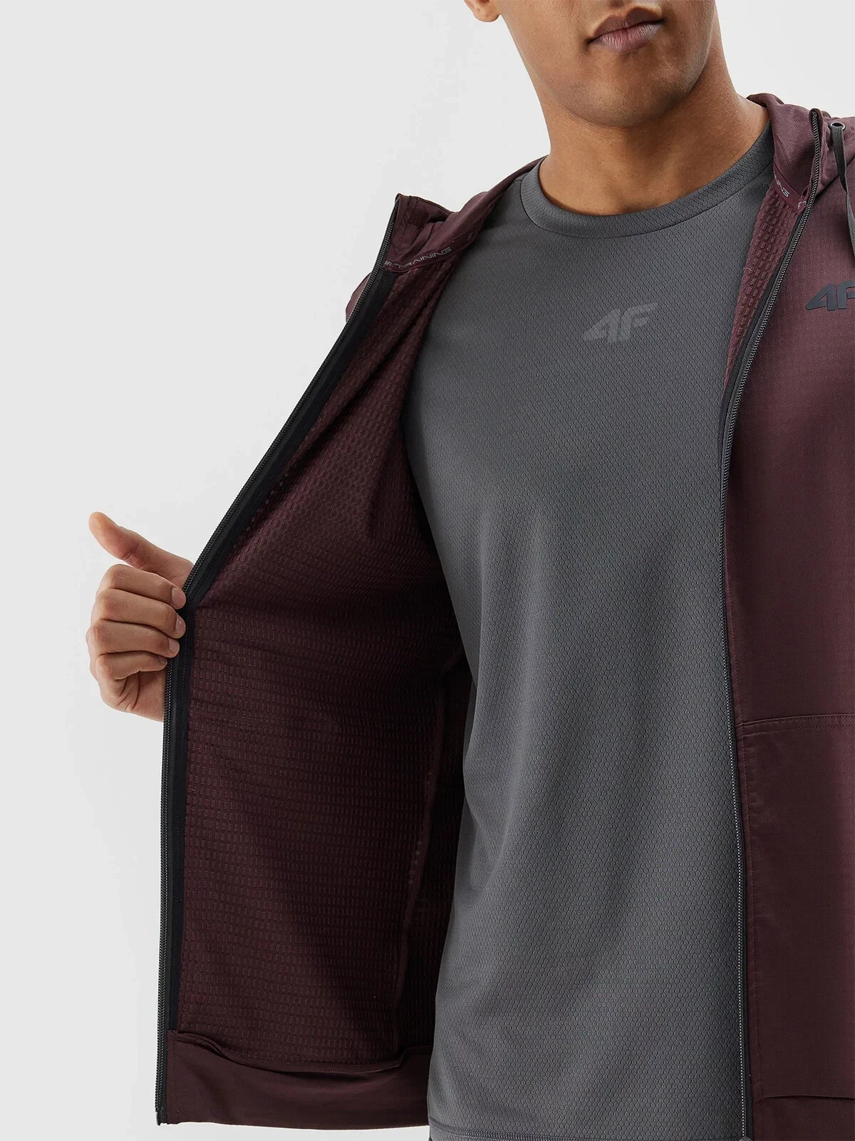 Má střih regular, který se pohodlně přizpůsobí postavě. Vazba na obou stranách interlock pleteniny je stejná. Materiál je odolný a zároveň měkký, dobře padne a absorbuje vlhkost. Pánská sportovní mikina s kapucí 4F má střední gramáž 210 gsm, díky čemuž je měkká a prodyšnější.