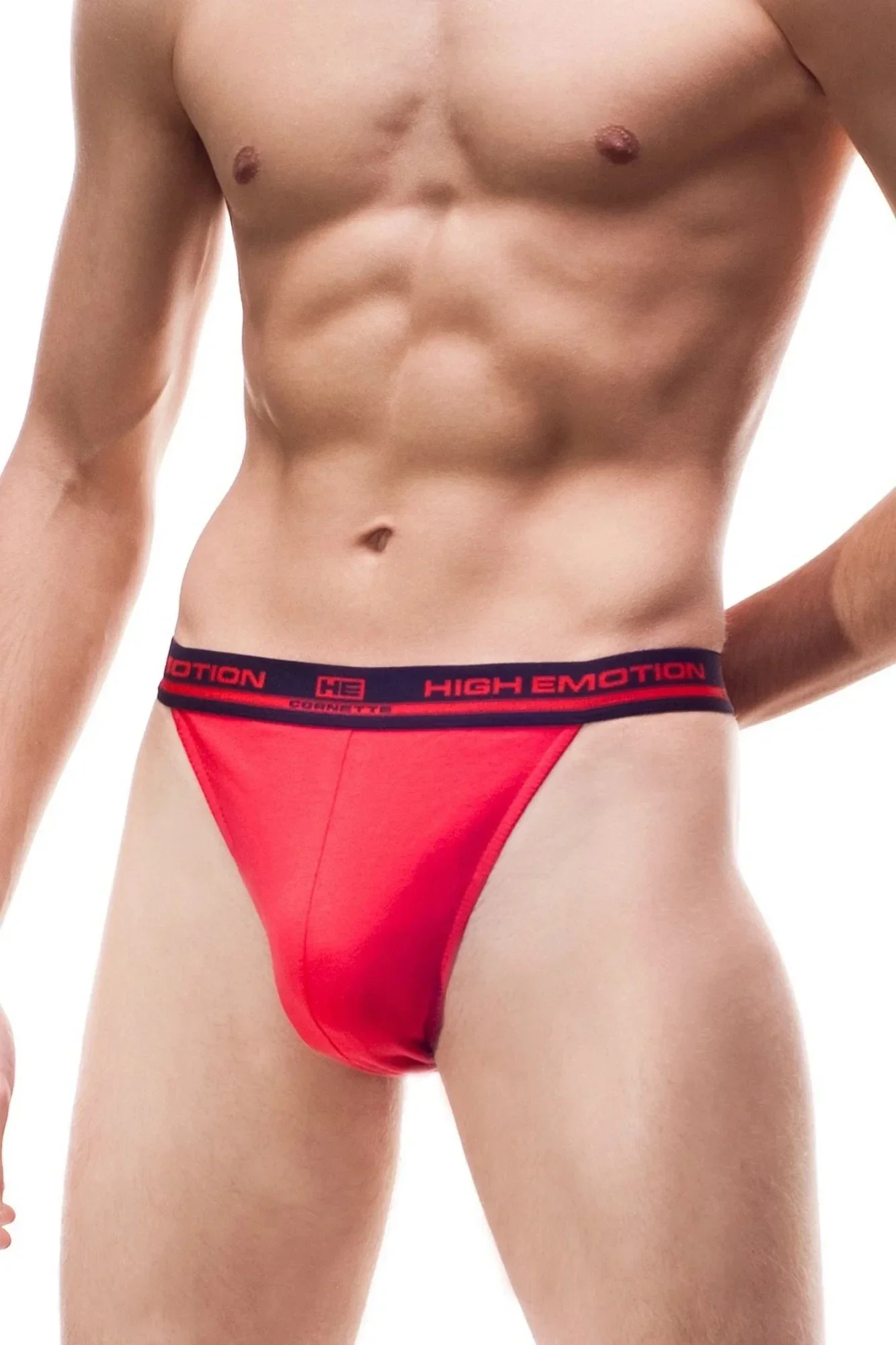 Pánská tanga High emotion Cornette - červená barva - v pase pevná guma s nápisem - zaručují maximální komfort