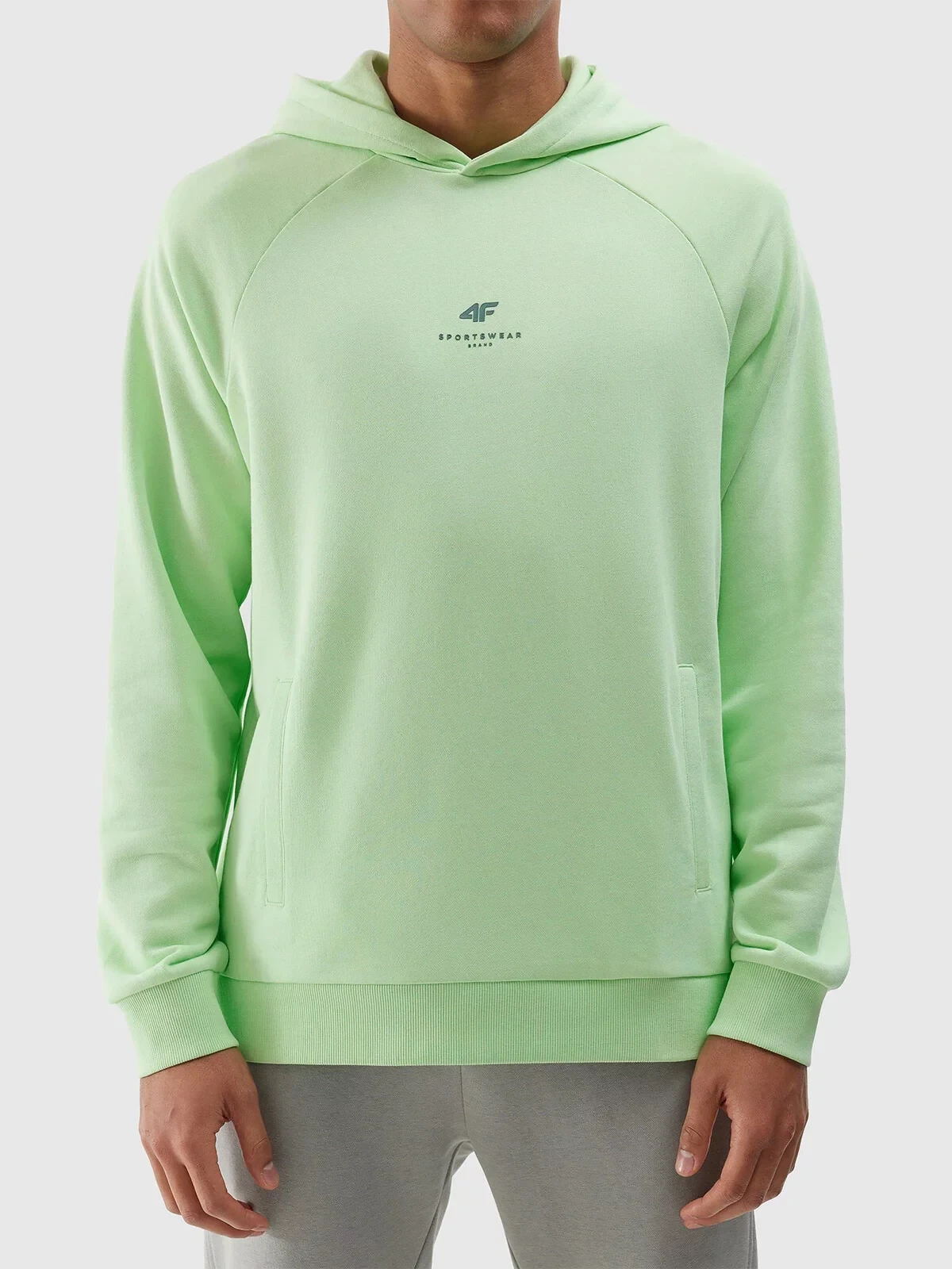 Pánská tepláková mikina bez zapínání a s kapucí z organické bavlny 4F - světle zelená
