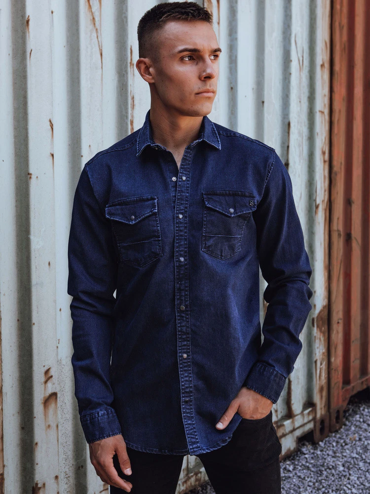Pánská tmavě modrá džínová košile FashionStreet DX2587
