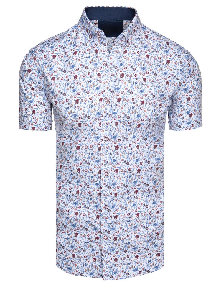 Pánská úzká vzorovaná košile s krátkým rukávem bílá FashionStreet KX1069