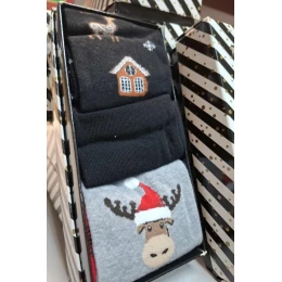 Skarpetki wykonano z miękkiego, przyjemnego materiału, który gwarantuje komfort noszenia przez cały dzień. To praktyczny i stylowy zestaw, doskonały zarówno jako prezent, jak i uzupełnienie świątecznej garderoby.