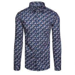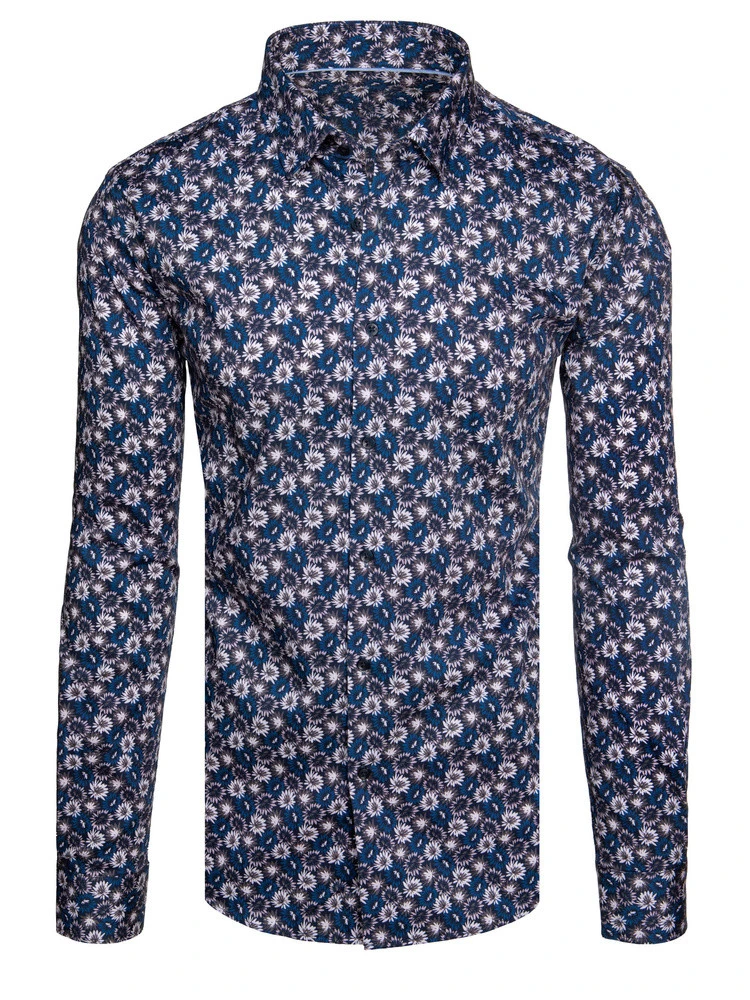 Pánská vzorovaná košile s dlouhým rukávem tmavě modrá FashionStreet DX2666