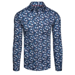 Pánská vzorovaná košile s dlouhým rukávem tmavě modrá FashionStreet DX2671