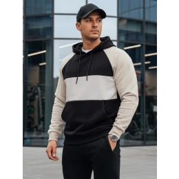 Pánská základní mikina s kapucí s popelínovými a černými pruhy FashionStreet BX5898