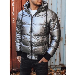 Pánská zimní bunda s kapucí ve stříbrné barvě FashionStreet TX3948