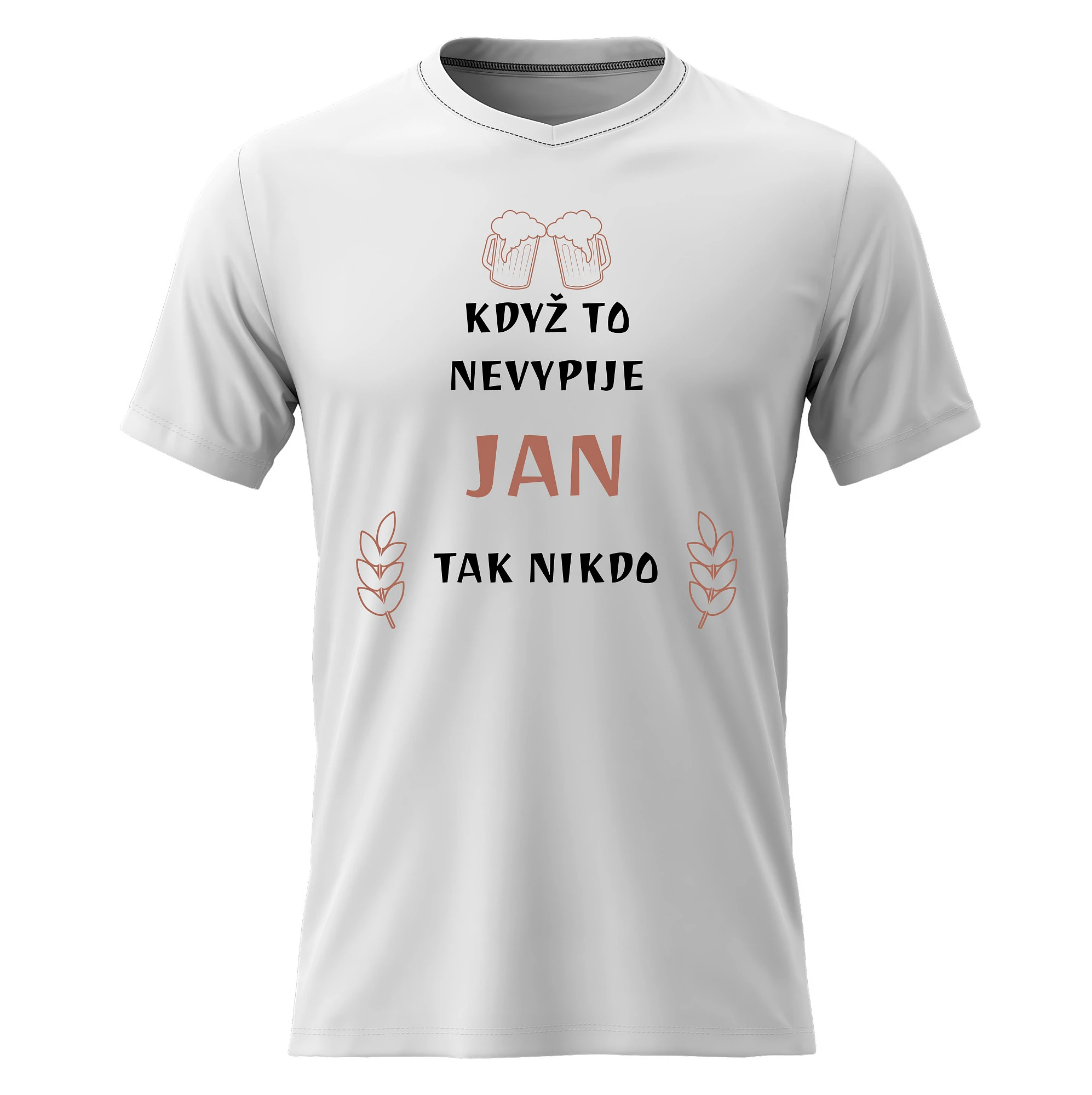 Pánské bavlněné tričko s potiskem - KDYŽ TO NEVYPIJE JAN, TAK NIKDO - bílé