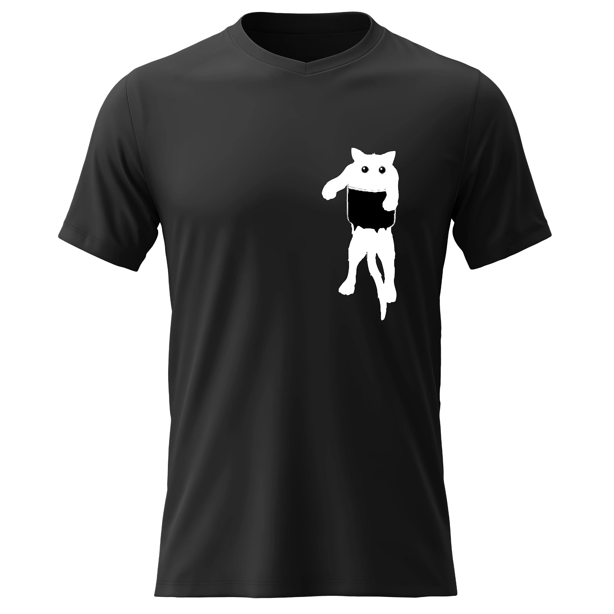 Pánské bavlněné tričko s potiskem - KOČKA V KAPSE - černé