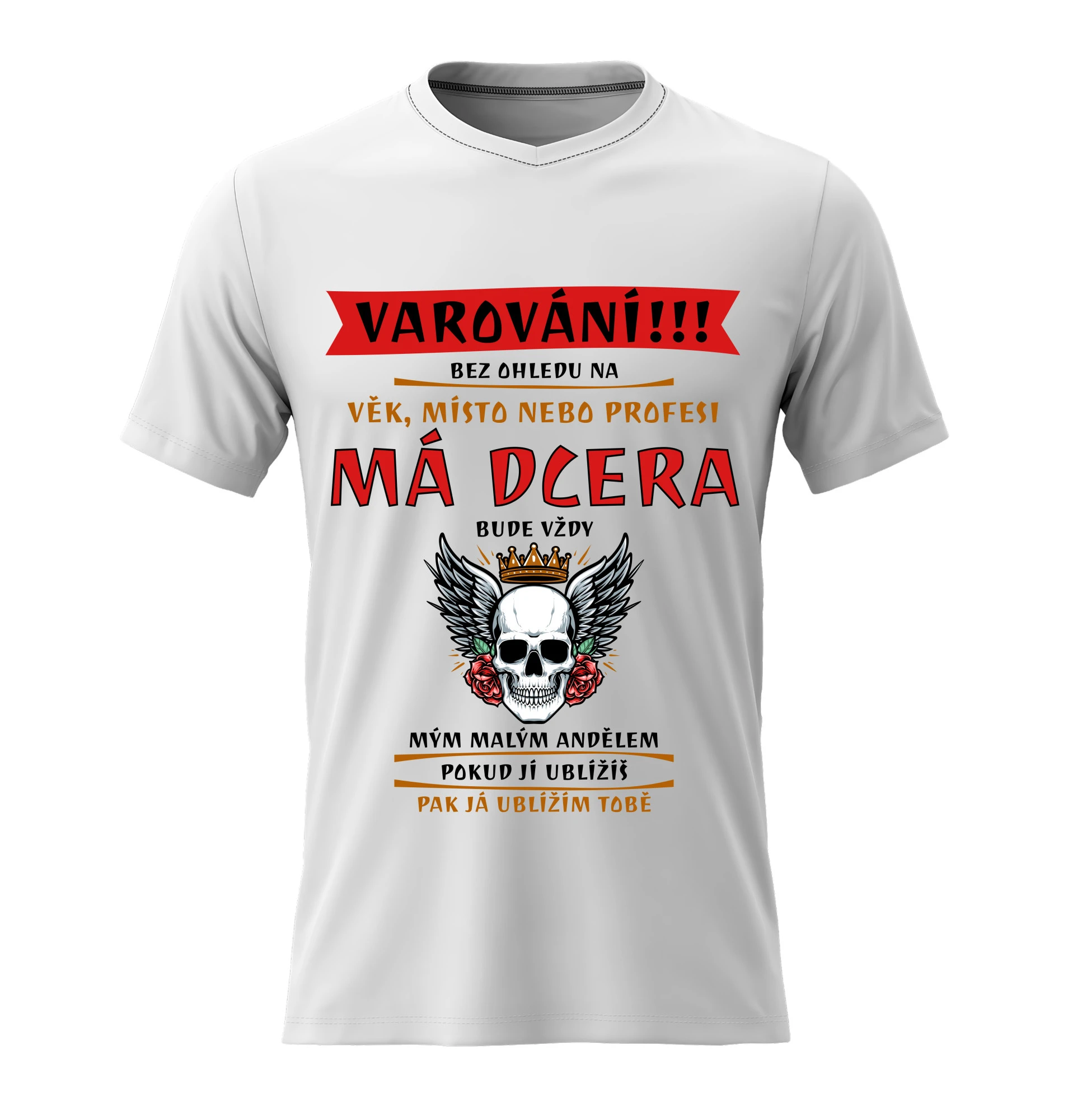 Vtipné tričko s potiskem MÁ DCERA BUDE VŽDY MÝM MALÝM ANDĚLEM – styl s nadhledem