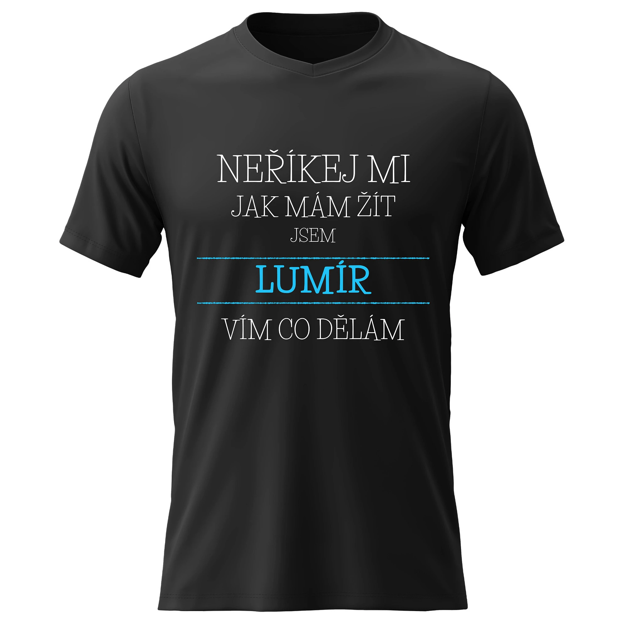 Pánské bavlněné tričko s potiskem - NEŘÍKEJ MI, JAK MÁM ŽÍT, JSEM LUMÍR - černé