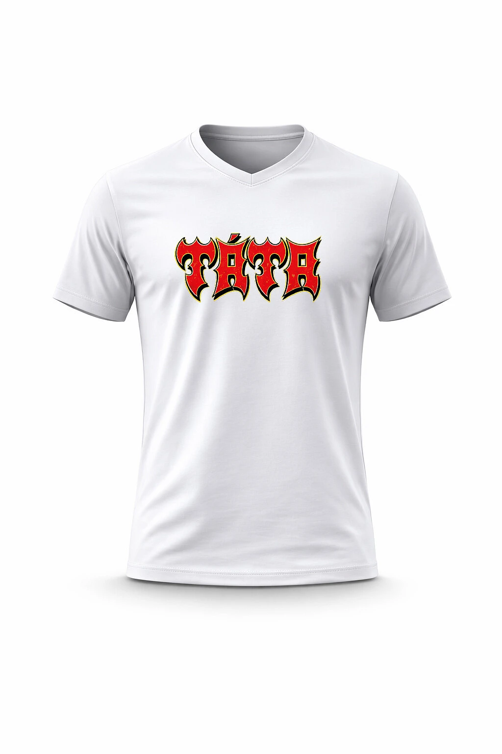 Pánské bavlněné tričko s potiskem - TÁTA (ROCK) - bílé