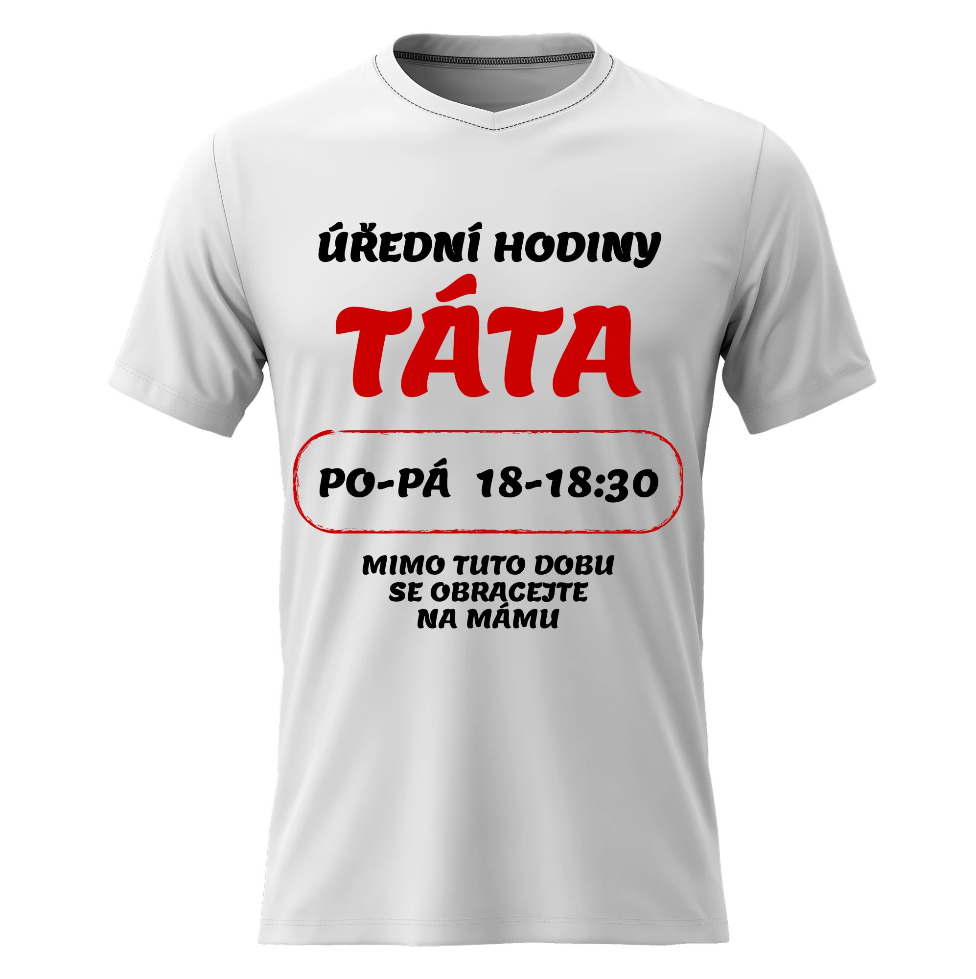 Pánské bavlněné tričko s potiskem - ÚŘEDNÍ HODINY TÁTA - bílé