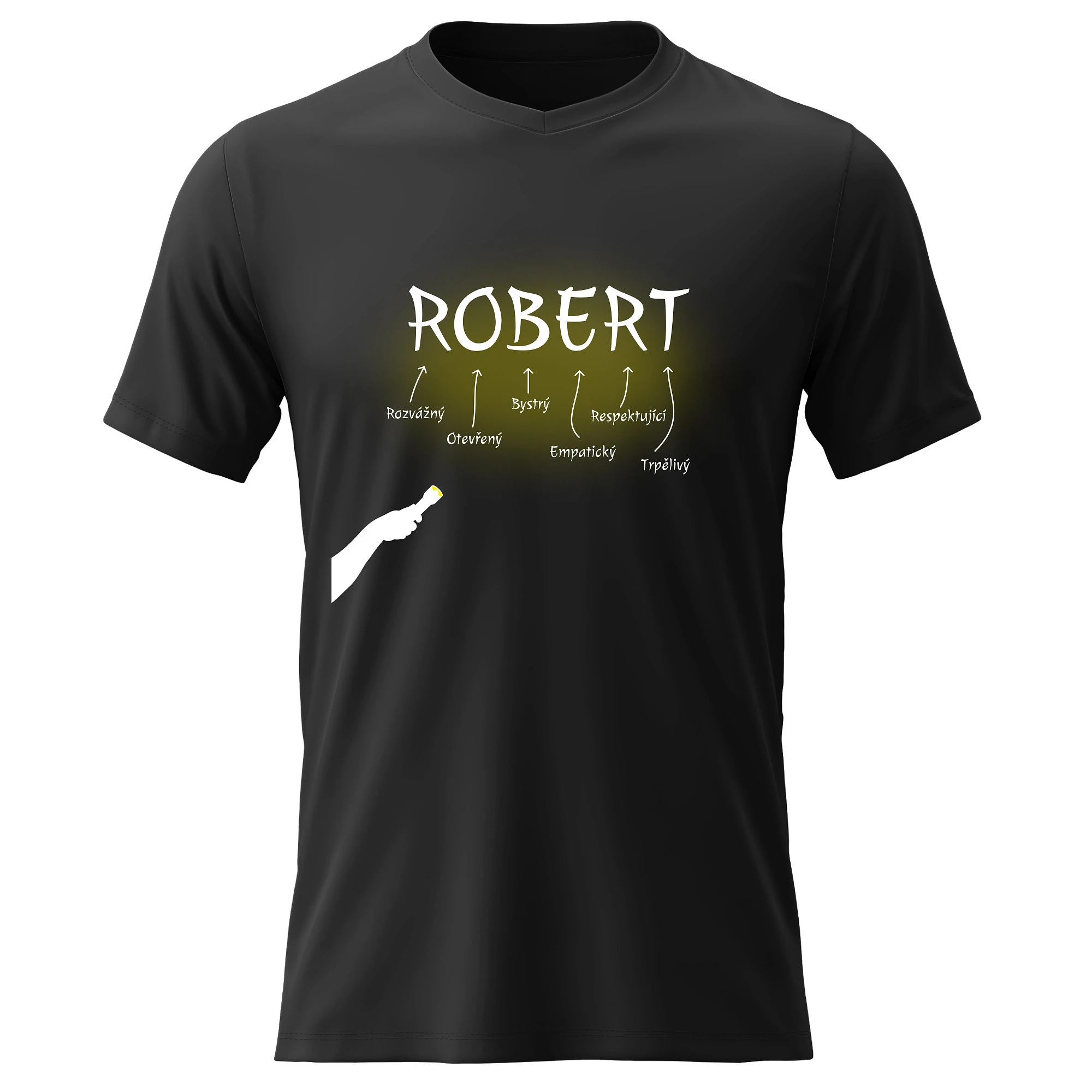 Vtipné tričko s potiskem VLASTNOSTI - ROBERT – styl s nadhledem