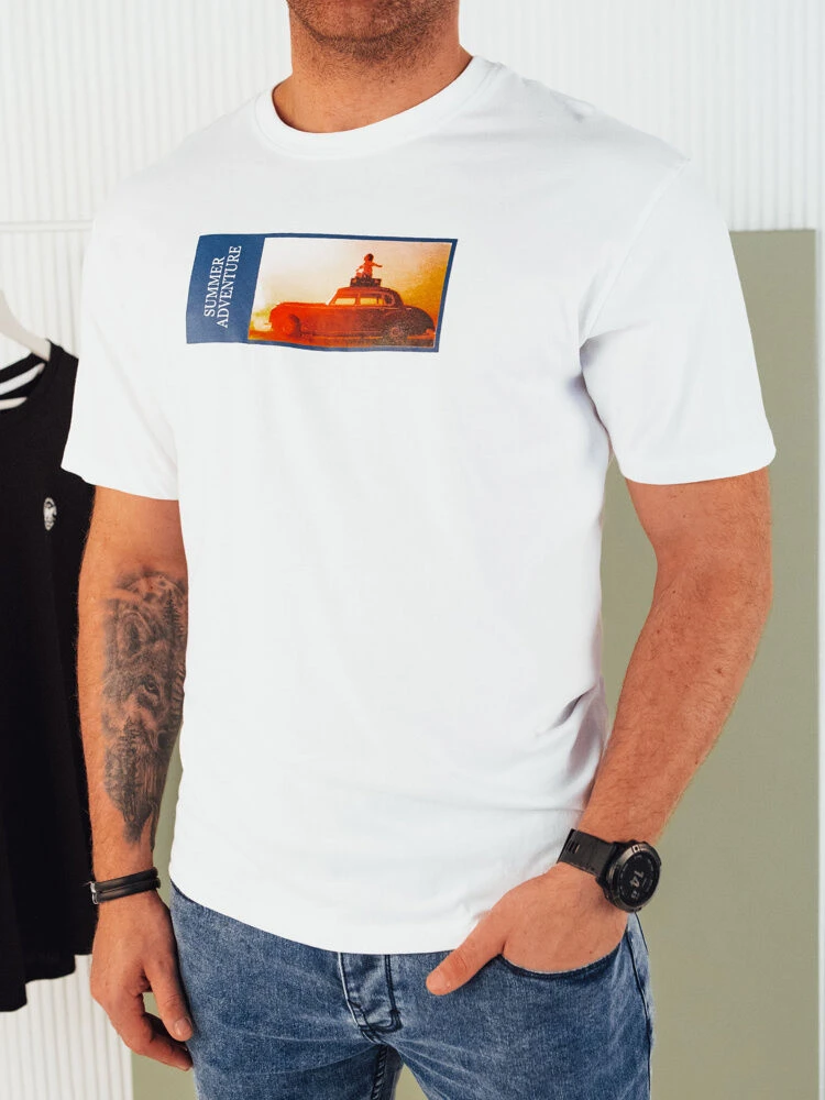 Pánské bílé tričko s potiskem FashionStreet RX5484