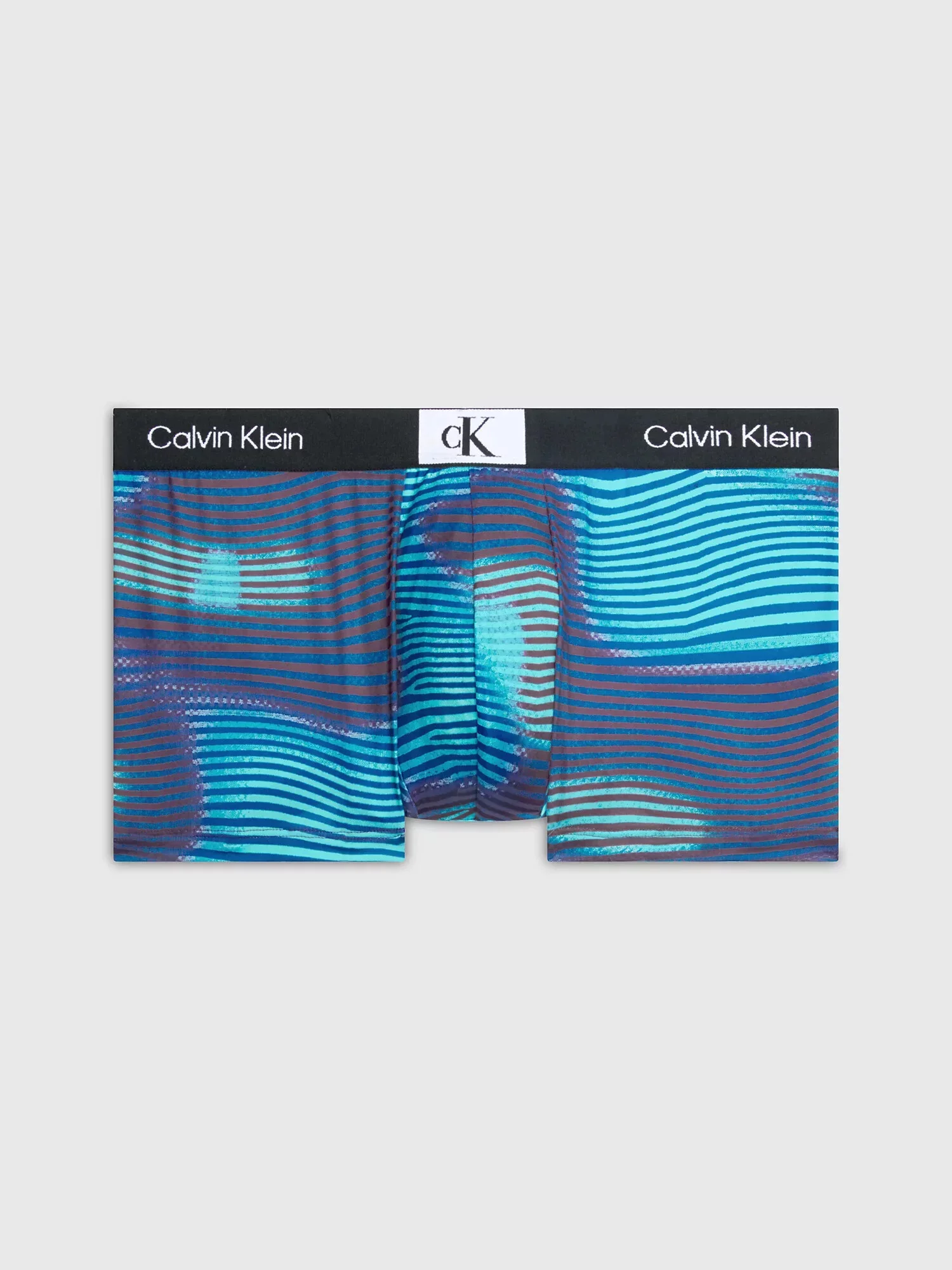 Calvin Klein 1996 se vyznačuje výraznými potisky a barvami s ikonickým logem monogramu v rámečku.