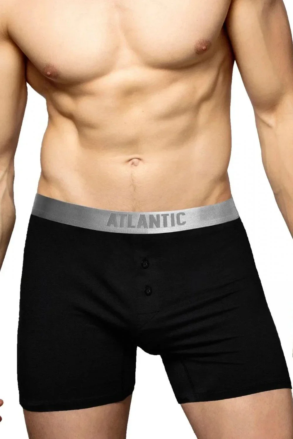 Pánské trenýrky 005 black Atlantic - černá barva - z vysoce kvalitní bavlny a modalu - komfortní a pohodlné - měkká guma s nápisem ATLANTIC - zapínání na knoflík