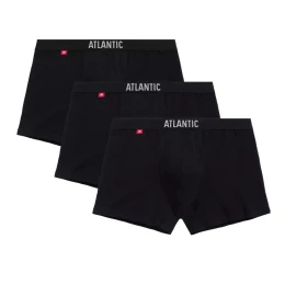 Pánské boxerky 3 pack 011 black Atlantic - černá barva - 3 ks v balení - komfortní guma s nášivkou ATLANTIC - lem nohaviček netlačí do stehen, proto jsou boxerky při nošení pohodlné a komfortní - výhodné balení 3 kusů