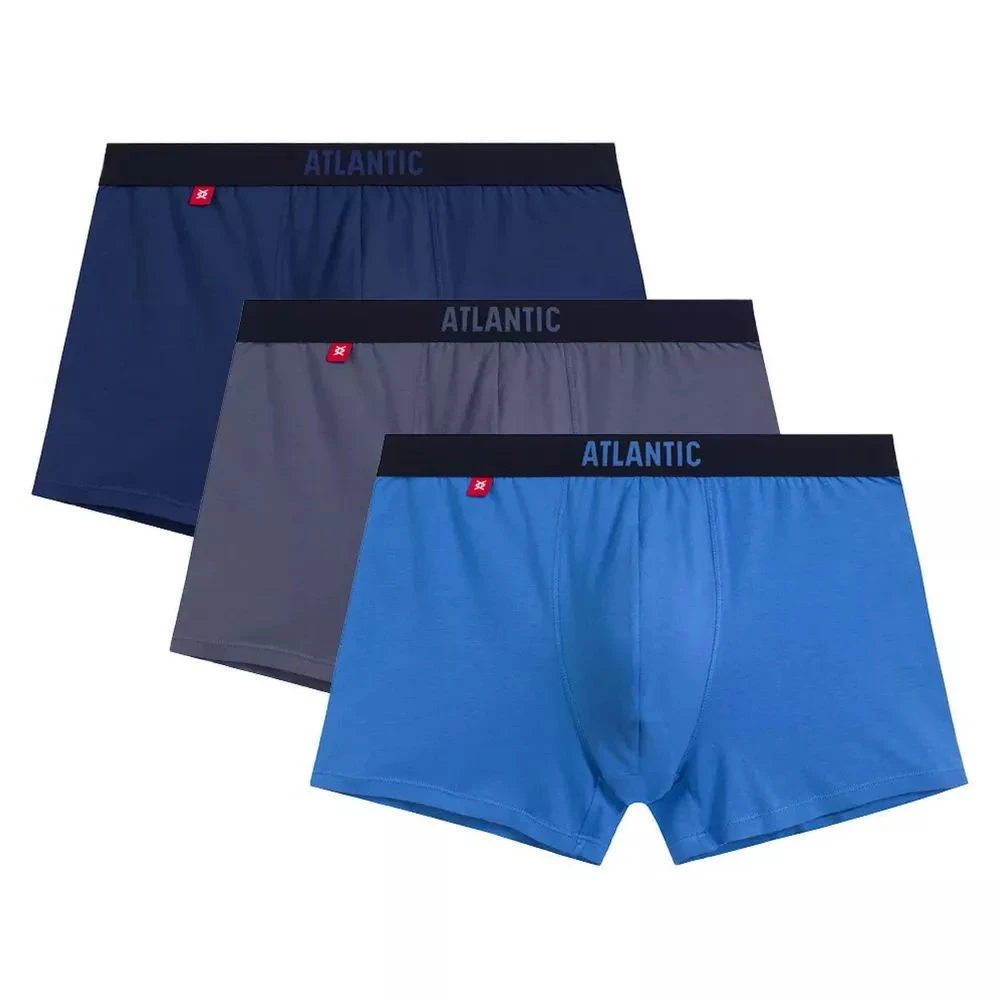 Pánské boxerky 3 pack 011 blue Atlantic - z vysoce jakostní bavlny - 3 ks v balení - komfortní guma s nášivkou ATLANTIC - lem nohaviček netlačí do stehen, proto jsou boxerky při nošení pohodlné a komfortní - výhodné balení 3 barev