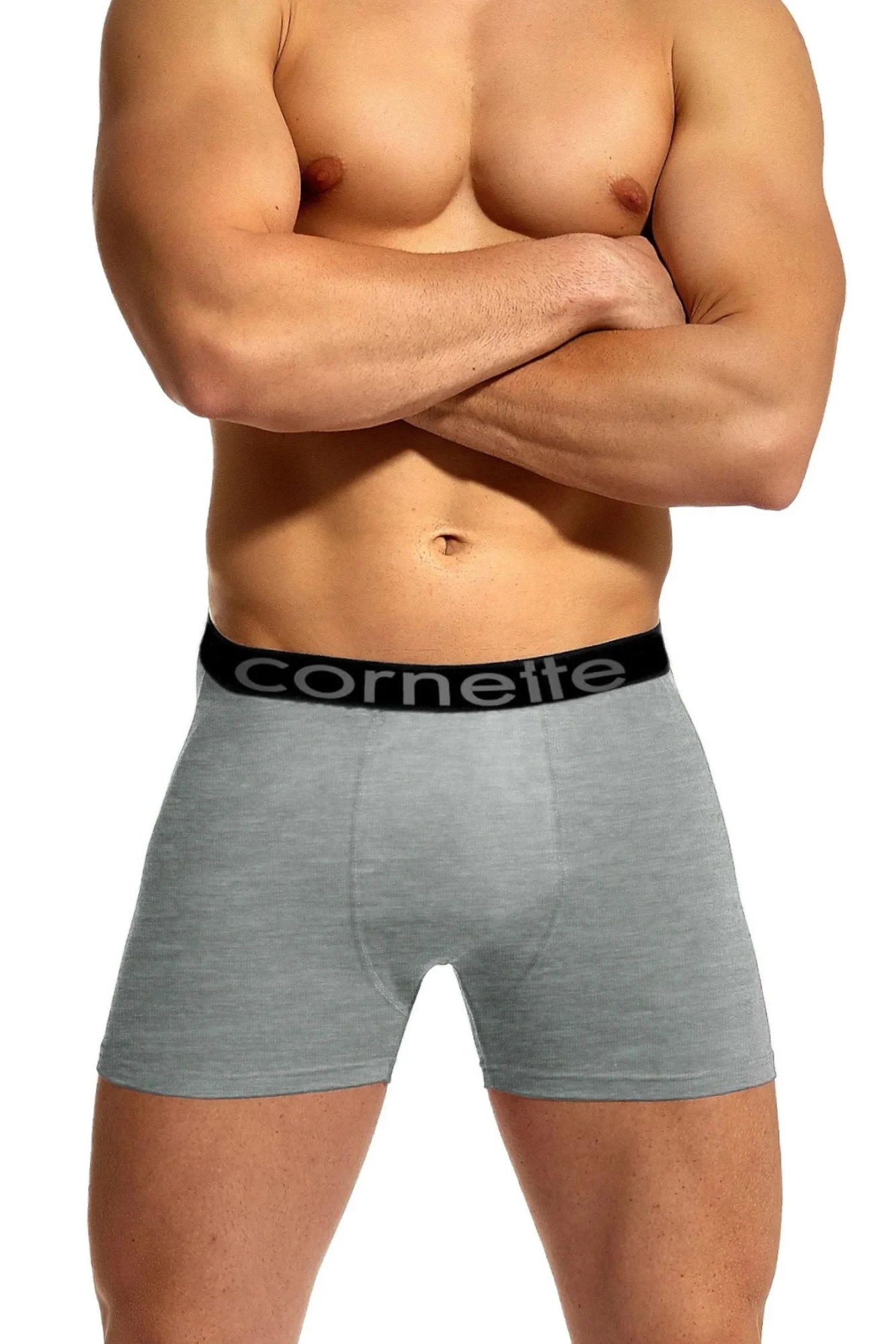 Pánské boxerky 508/01 High emotion grey CORNETTE - šedá barva - z vysoce jakostní bavlny - ploché švy - pohodlná gumu v pase - lem nohaviček netlačí do stehen, proto jsou boxerky při nošení pohodlné a komfortní