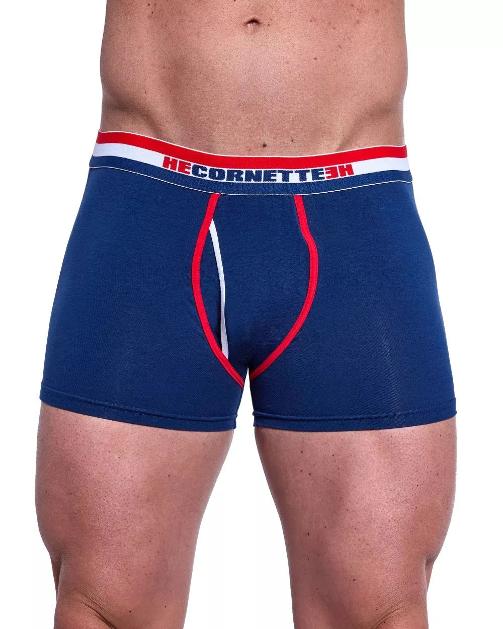 Pánské boxerky 515/155 High emotion CORNETTE - tmavě modrá barva - z vysoce jakostní bavlny - mají ploché švy a pohodlnou gumu v pase s nápisem HENDERSON - kontrastní pásky - lem nohaviček netlačí do stehen, proto jsou boxerky při nošení pohodlné a komfortní