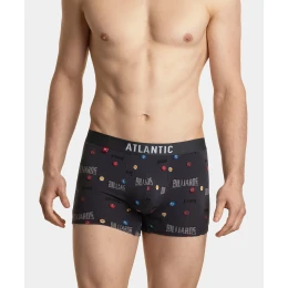 Trojbalení obsahuje přiléhavé pánské boxerky, zdobené vícebarevnými potisky kulečníkových koulí. Boxerky sportovního charakteru, mají nízký pas a univerzální délku nohavic. V pase jsou kalhotky značeny jemnou, nekompresivní a nemačkavou gumou, zdobenou logem ATLANTIC. Boxerky mají také profilující střihy, díky kterým se prádlo dokonale přizpůsobí tělu a přilne k němu. Boxerky jsou vyrobeny z na dotek příjemné bavlněné strečové látky, která je kombinací jemné bavlny a strečového elastanu. Odolný úplet při používání, prodyšný, zabraňuje pocení těla a je šetrný i k té nejcitlivější pokožce.