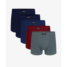 Balení obsahuje 5 přiléhavých pánských boxerek v následujících barvách: 2x tmavě modrá, vínová, smaragdová a modrá. Boxerky sportovního střihu mají nízký pas - označený měkkou, neškrtící tunýlkovou gumou - a univerzální délku nohavic. Spodní prádlo dokonale přiléhá k tělu a díky zde použitým profilujícím švům k němu přilne. Je tedy ideální volbou pro jakýkoli typ postavy. Boxerky jsou vyrobeny z bavlněné strečové látky, která je kombinací na dotek příjemné bavlny a strečového elastanu. Tato kombinace šetrná k pokožce je prodyšná, čímž zabraňuje pocení těla a nezpůsobuje kožní alergie.