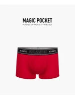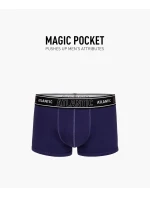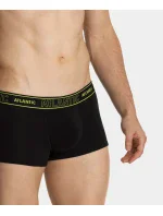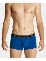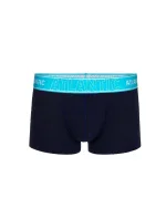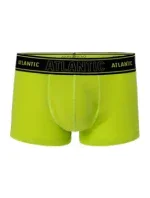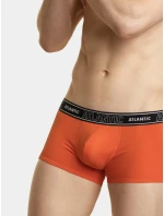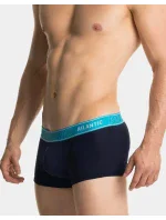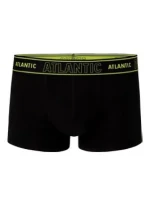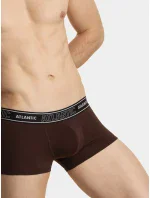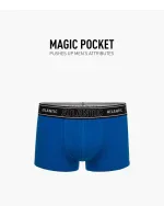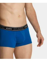 Modré pánské boxerky se vyznačují sportovním střihem. Jejich pas je nízký a nohy standardní délky. V pase jsou boxerky označené měkkou a širokou gumou zdobenou velkým nápisem ATLANTIC. Na dotek příjemná guma nestlačuje tělo a nezarývá se do něj a zajišťuje tak maximální komfort nošení. Na výrobu boxerek jsme použili pleteninu, která je kombinací jemné a hedvábné bambusové tkaniny, na dotek příjemné bavlny a pružného elastanu. Látka šetrná k pokožce má schopnost termoregulace, což znamená, že v horkém počasí dodává pocit chladu a v zimě hřeje. Tyto a další jedinečné vlastnosti si zachovává po dlouhou dobu používání.