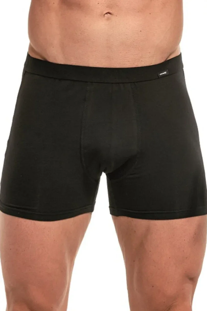 Boxerky jsou vyrobené z pružné tkaniny, která je směsí přírodní bavlny a lycry. Použitý materiál je velmi kvalitní, prodyšný a skvěle odvádí vlhkost a pot od těla. Model má ploché švy, ověřený klasický střih a v pase má gumu v tunýlku obšitou jemným materiálem. Díky tomu jsou tyto boxerky exkluzivním spodním prádlem.