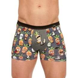 Pánské boxerky, které jsou ozdobeny zábavným potiskem. Díky gumě spojené plochým švem a obšité bavlnou a také díky lemování nohaviček, které netlačí do stehen, je model pohodlný a komfortní. Model dokonale přiléhá k tělu.