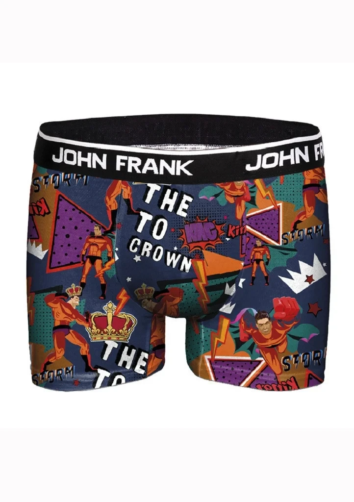 Pánské boxerky značky John Frank z vysokého podílu bavlny. Boxerky s potiskem jsou velmi příjemné na dotek a pohodlné při nošení. Jemná, širší gumička v pase má kolem logo John Frank.